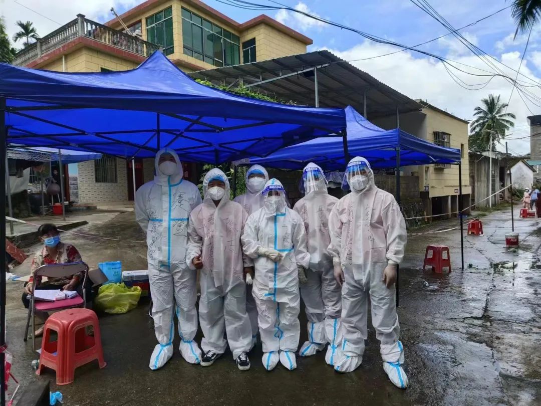 為精準(zhǔn)助力五指山市新冠肺炎疫情聯(lián)防聯(lián)控工作,8月6日,五指山清能置業(yè)有限公司黨支部、工會(huì)、團(tuán)支部發(fā)起《抗擊疫情 志愿同行——參加疫情防控志愿者倡議書》,大家積極踴躍報(bào)名,迅速組建了由20名共產(chǎn)黨員、共青團(tuán)員組成的志愿服務(wù)隊(duì)。當(dāng)疫情防控“集結(jié)號(hào)”吹響,“清能人”化身“志愿紅”,緊急馳援五指山市南圣鎮(zhèn)、通什鎮(zhèn)、暢好鄉(xiāng)等地,與醫(yī)護(hù)人員、鎮(zhèn)村干部一同做好疫情排查、防疫宣傳等工作,并高效完成近6000名群眾的核酸檢測(cè)任務(wù)。