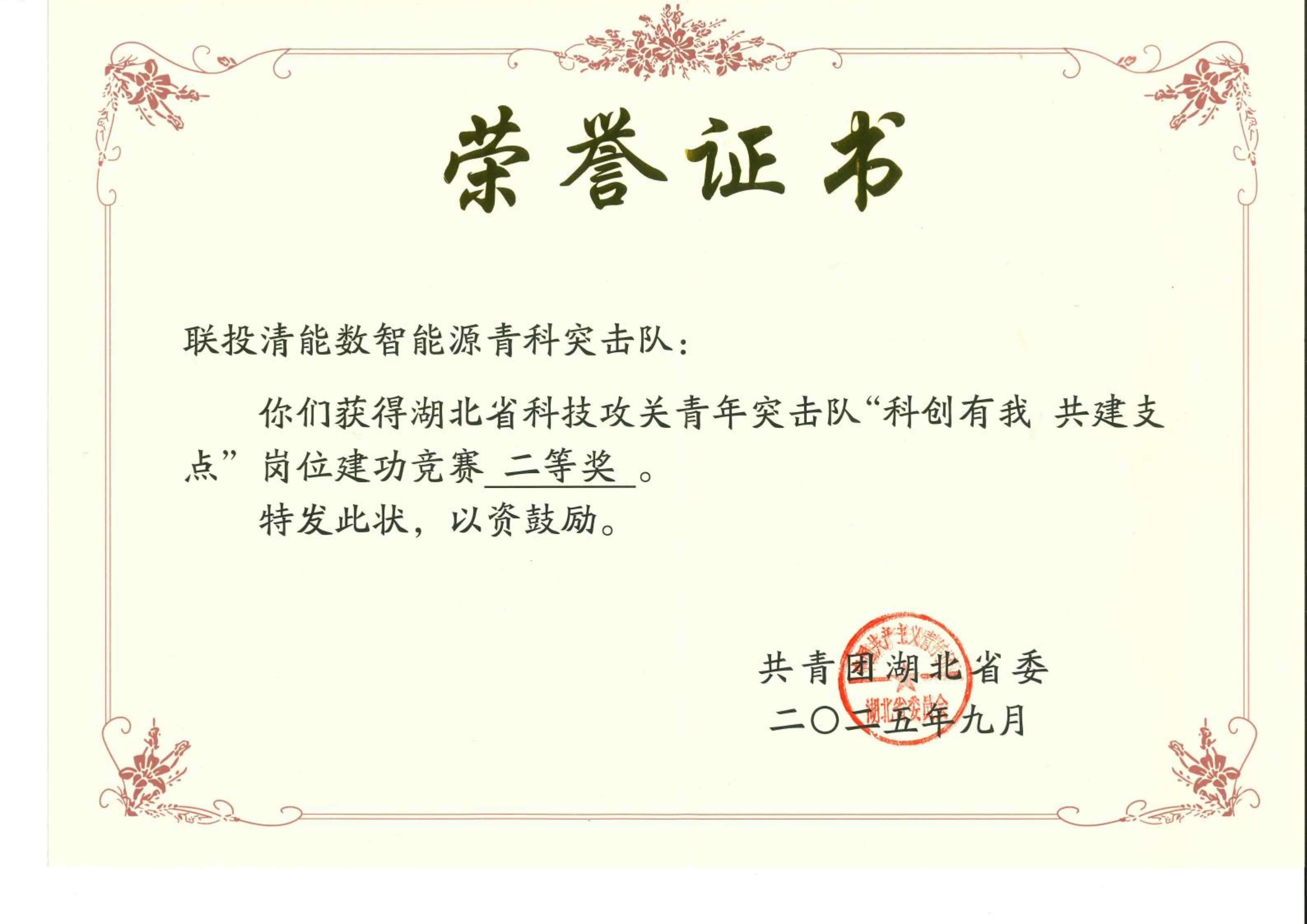 湖北省科技攻關(guān)青年突擊隊(duì)“科創(chuàng)有我 共建支點(diǎn)”崗位建功競賽二等獎